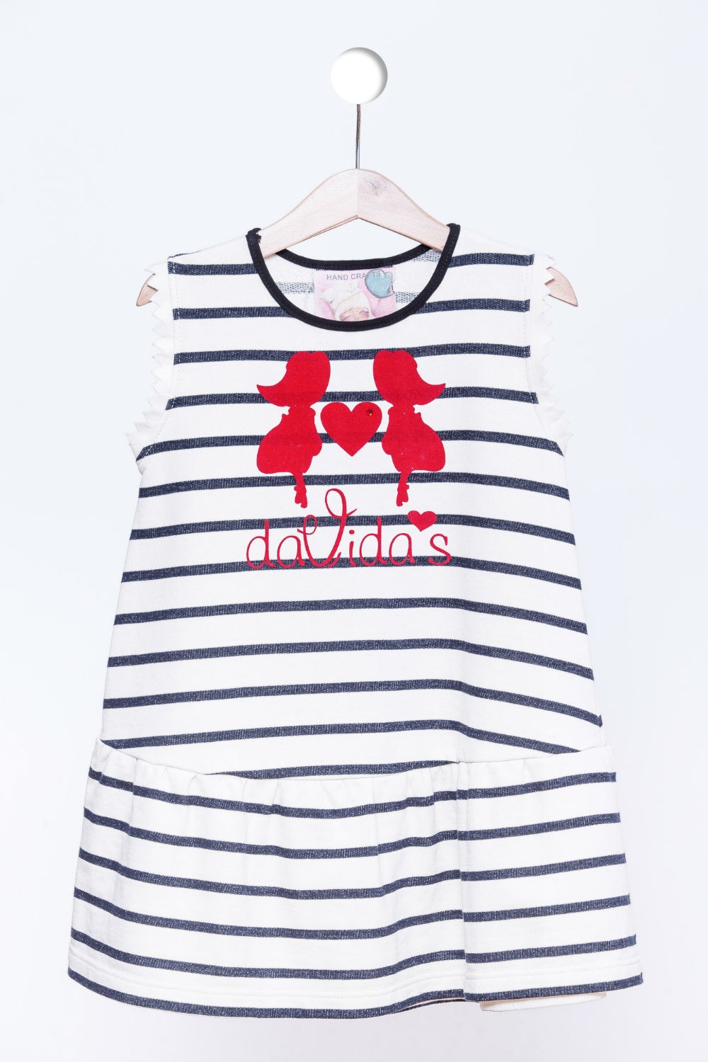 Mornarnsko prugasta haljinica od čvrstog pamuka, podobna za sva godišnja doba sa upečatljivom traper prugom uzduž leđa haljinice.